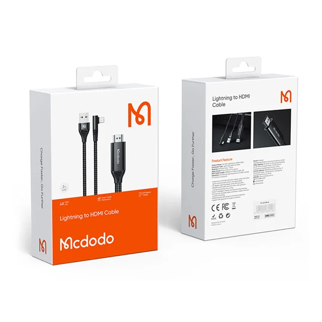 با استفاده از کابل تبدیل لایتنینگ به HDMI مک دودو 2 متر می توانید انواع گوشی های آیفون را به تلویزیون و یا ویدئو پروژکتورهایی که دارای پورت اچ دی ام آی هستند متصل کنید . این مبدل دارای کابلی به طول 2 متر است که می توانید به راحتی گوشی آیفون خود را به یک صفحه نمایش مجهز به HDMI به اشتراک بگذارید. این مبدل یک کانکتور USB نیز دارد که به آداپتور متصل و به پریز برق وصل می شود تا انرژی خود را برای کار از این طریق بتواند تامین کند . این کانکتور لایتنینگ که به گوشی شما متصل می شود به صورت 90 درجه می باشد تا به خوبی روی بدنه گوشی قرار بگیرد تا بتوانید خیلی راحت با بودن آن باگوشی خود بازی کنید .