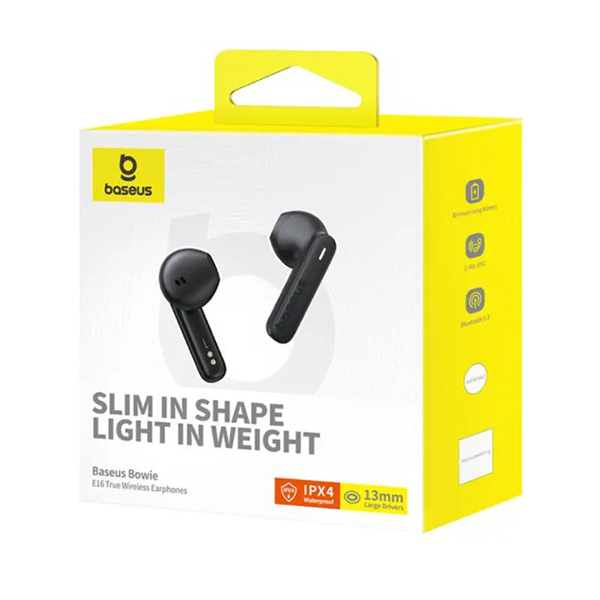 بدون شک محصولات برند Baseus یکی از برجسته ترینها در نوع خود در دنیای کلاهای دیجیتال هستند. هندزفری بلوتوثی Baseus Bowie E16 نیز یکی از آن محصولات محصوب می شود که به شما این امکان را می دهد که از صدای واضح، با جزئیات فراوان و باس قدرتمند لذت ببرید. بلوتوث 5.3 وظیفه اتصال مطمئن و سریع با تاخیر فوق العاده کم را عهده دار است. زمان کار بادزها همراه با کیس شارژ تا 30 ساعت می رسد و استاندارد ضد آب آن را برای استفاده در فضای باز مناسب می گرداند.