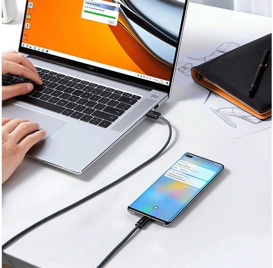 درنتیجه وسیلهی الکترونیکی شما از صدمات مربوط به نوسان جریان در امان میماند .آنچه باعث بهبود سرعت شارژدهی این محصول می شود استفاده از 224 سیم تقویتشدهی مسی می باشد که بههم پیچیده و 6 رشتهسیم هستهی مرکزی این کابل را تشکیل دادهاند. به دور این رشتهسیمها نیز 3 لایه روکش نرم و سخت درونی کشیده خواهد شد تا بهخوبی محافظت شوند درنهایت بدنهی 1 متری کابل شارژ فست تایپ سی بیسوس CALD000602 با پوششی از الیاف بههمبافتهشده روکش می شود . این روکش بیرونی دورنگ، هم ظاهر زیبایی دارد و هم آنچنان مستحکم است که سبب افزایش مقاومت این کابل دربرابر کشش و گرهخوردگی تا 10 هزار بار خواهد شد .