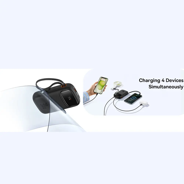 شارژر همراه بیسوس مجهز به یک پورت تایپسی و دو پورت USB-A است که اجازه میدهد تا سه دستگاه به طور همزمان شارژ شوند. این قابلیت برای کسانی که چند دستگاه هوشمند دارند، بسیار مفید است و نیاز به شارژ جداگانه دستگاهها را از بین میبرد. شارژ چندگانه باعث صرفهجویی در زمان و افزایش کارایی میشود. همچنین، کابلهای داخلی USB-C تعبیه شده در شارژر، کار با آن را بسیار ساده و سریع کرده است. این ویژگی، Qpow 2 را به گزینهای ایدهآل برای کاربران پرمشغله تبدیل میکند.