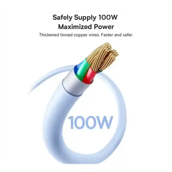 یکی از مهمترین قابلیتهای این کابل، پشتیبانی از شارژ سریع تا 100 وات است. این ویژگی به شما این امکان را میدهد که دستگاههای مختلف خود را با سرعت بالا و بدون تأخیر شارژ کنید. به عنوان مثال، گوشیهای هوشمند، تبلتها، لپتاپها یا دستگاههای دیگر که از قابلیت شارژ سریع پشتیبانی میکنند، میتوانند به راحتی با استفاده از این کابل به سرعت شارژ شوند. این کابل برای شارژ دستگاههایی که نیاز به شارژ سریع دارند، ایدهآل است. کابل Baseus Silky Series قادر است جریان برق لازم برای شارژ سریع را به دستگاه منتقل کند، بدون اینکه به کیفیت شارژ یا عمر باتری دستگاه آسیبی وارد کند. این ویژگی بهویژه برای افرادی که زمان محدودی دارند و نیاز دارند دستگاههایشان را در سریعترین زمان ممکن شارژ کنند، بسیار مفید است.