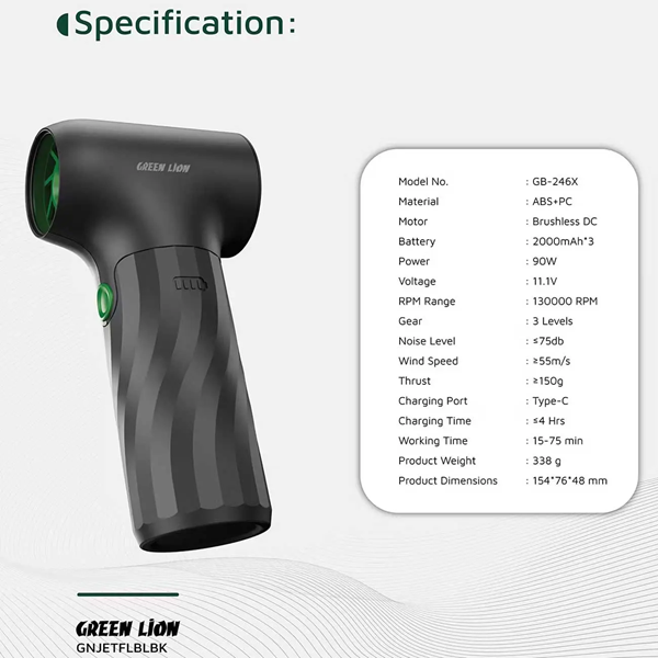 جت فن دمنده باد قوی شارژی گرینلاین Green Lion مدل GNJETFLBLBK