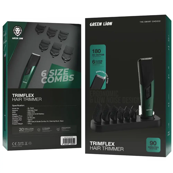 فرقی ندارد به دنبال اصلاح روزمره باشید یا حالت دادن حرفهای به ریش و مو؛ با ماشین اصلاح بدن Green Lion GL-TM22، همه چیز تحت کنترل شماست. طراحی خلاقانه، قدرت بالا و لوازم جانبی کامل، این دستگاه را به یک ابزار اصلاح حرفهای برای خانه و سالن تبدیل کرده است. از کوتاه کردن دقیق گرفته تا فرمدهی دلخواه، با GL-TM22 هر سبکی قابل اجراست. اصلاح با دقت بالا و در عین حال آسان، حالا در دستان شماست.