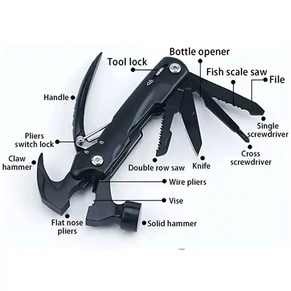 چکش گرین لاین با 12 عملکرد متنوع، شامل چکش، سیم چین، اره، میخ کش، چاقو، پیچ گوشتی یک سو، پیچ گوشتی چهارسو، انبردست، سوهان ناخن، پولک گیر ماهی، در باز کن و دم باریک، مجموعه کاملی از ابزارهای کاربردی را در یک وسیله جمع کرده است. این تنوع، محصول را برای استفاده در شرایط مختلف مثل کمپینگ، کارهای فنی، تعمیرات خودرو و حتی کارهای روزمره خانگی بسیار مناسب میسازد.