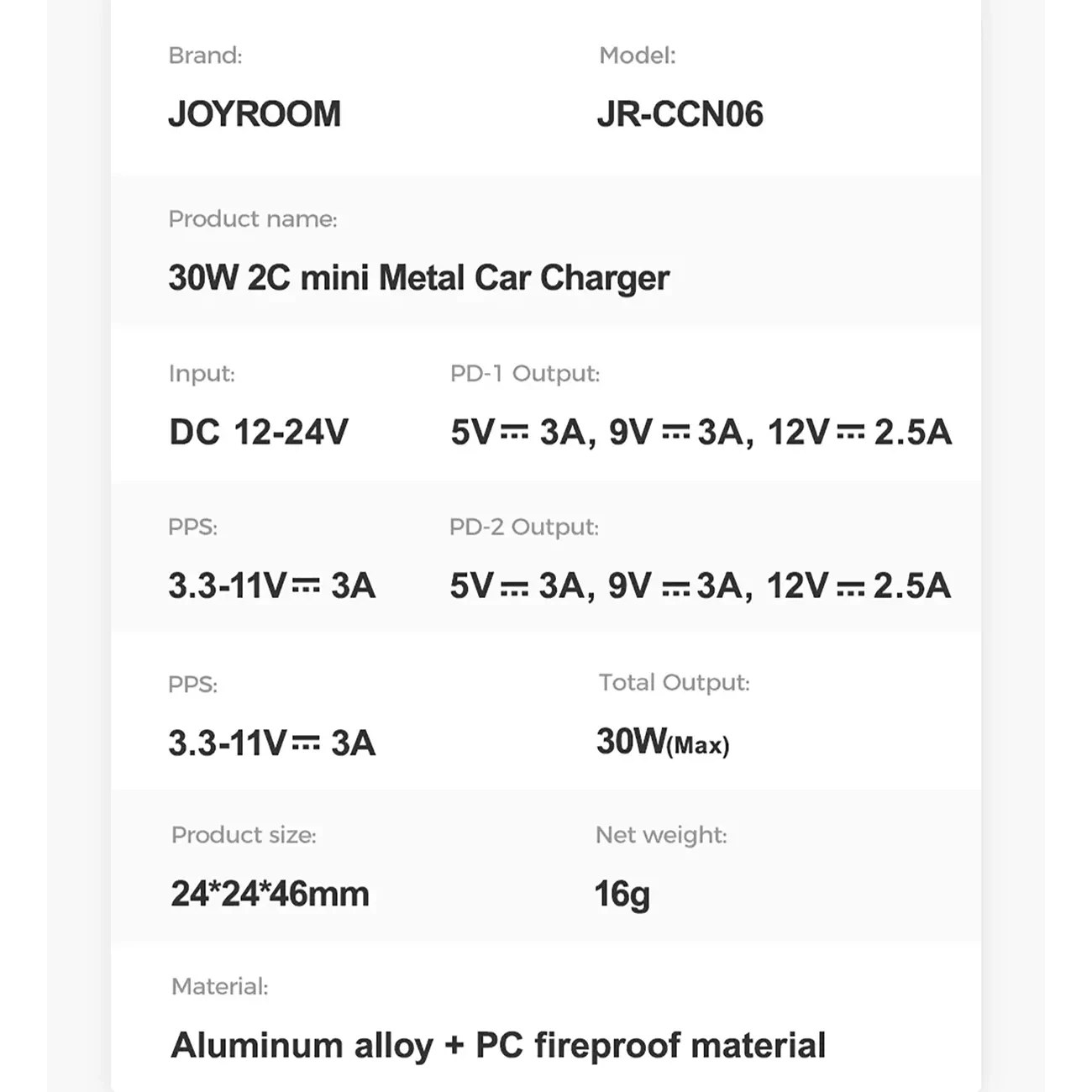 شارژر فندکی دو پورت 30 وات جویروم JR-CCN06