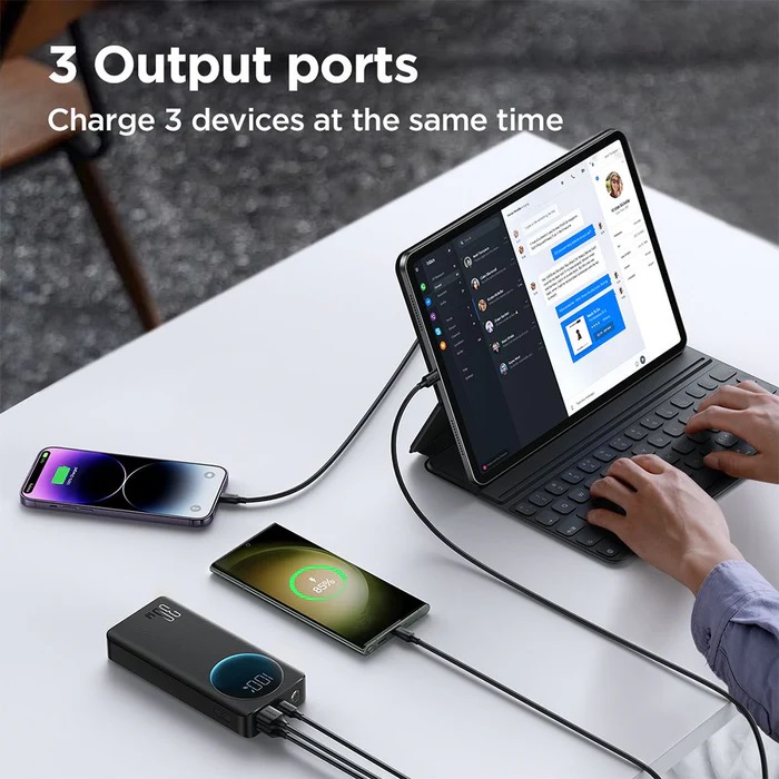 یکی از ویژگیهای کلیدی پاوربانک Joyroom JR-PBF02، داشتن دو پورت USB و یک پورت تایپ سی است. این ویژگی به شما این امکان را میدهد که به طور همزمان چندین دستگاه را شارژ کنید. پورت تایپ سی به ویژه برای دستگاههای جدیدتر مانند گوشیهای هوشمند و لپتاپهایی که از این فناوری پشتیبانی میکنند، مناسب است. همچنین، دو پورت USB امکان شارژ همزمان گوشیهای هوشمند، تبلتها و سایر دستگاههای الکترونیکی را فراهم میکند. این تنوع در پورتها، انعطافپذیری بیشتری را برای کاربران فراهم میکند و نیاز به حمل چندین شارژر را از بین میبرد.