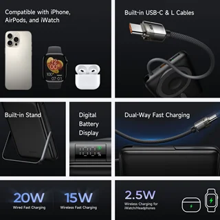 را شارژ کنید. این قابلیت باعث میشود این پاوربانک برای کاربران حرفهای، علاقهمندان به گجتهای اپل و افرادی که همزمان از چند دستگاه دیجیتال استفاده میکنند، به ابزاری بینظیر تبدیل شود.