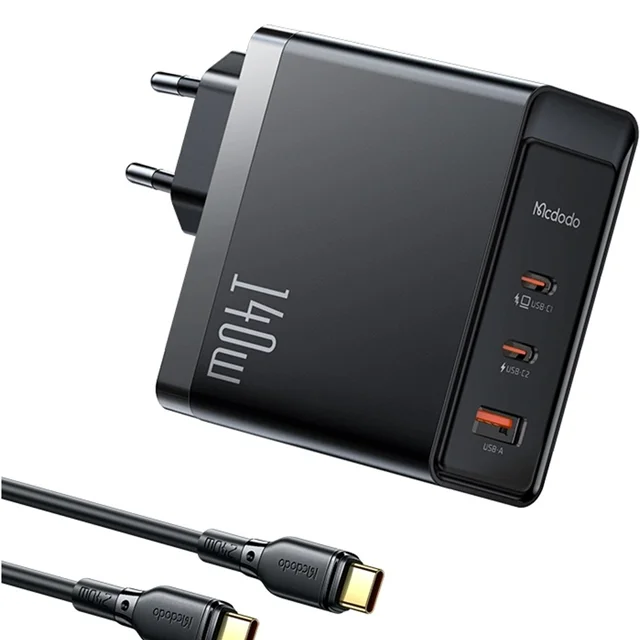 آداپتور Mcdodo 140W GaN5 Pro همراه با یک کابل دو سر تایپ سی عرضه میشود. این کابل به شما این امکان را میدهد که از هر دو پورت تایپ سی شارژر برای شارژ دستگاههای مختلف استفاده کنید. کابلهای تایپ سی بهویژه برای انتقال داده و شارژ سریع شناخته شدهاند و با استفاده از این کابل میتوانید سرعت شارژ دستگاههای خود را به حداکثر برسانید.