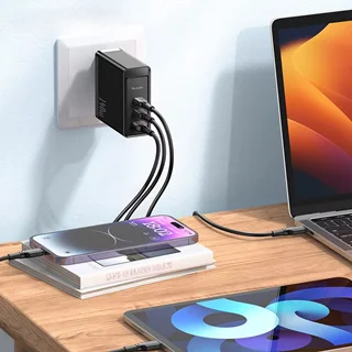 با وجود دو پورت تایپ سی، میتوانید از این شارژر برای شارژ دستگاههای مختلف که از پورت تایپ سی پشتیبانی میکنند، بهرهبرداری کنید. همچنین پورت USB-A امکان شارژ دستگاههای قدیمیتر که از این نوع پورت استفاده میکنند را فراهم میکند. این ویژگی بهویژه برای کسانی که چندین دستگاه دارند و نیاز به شارژ همزمان دارند، بسیار مناسب است.