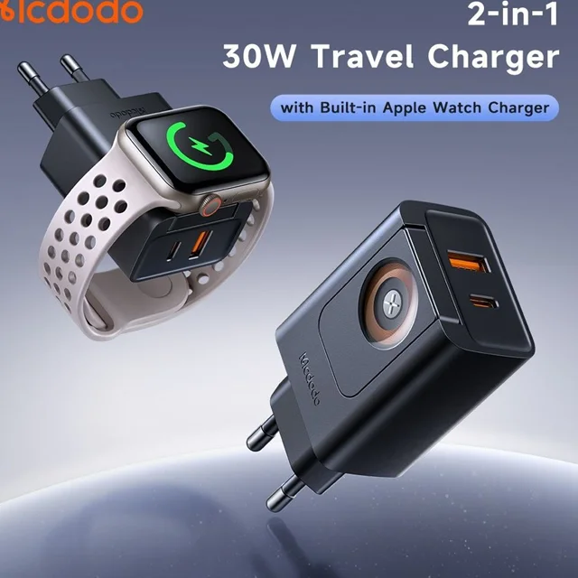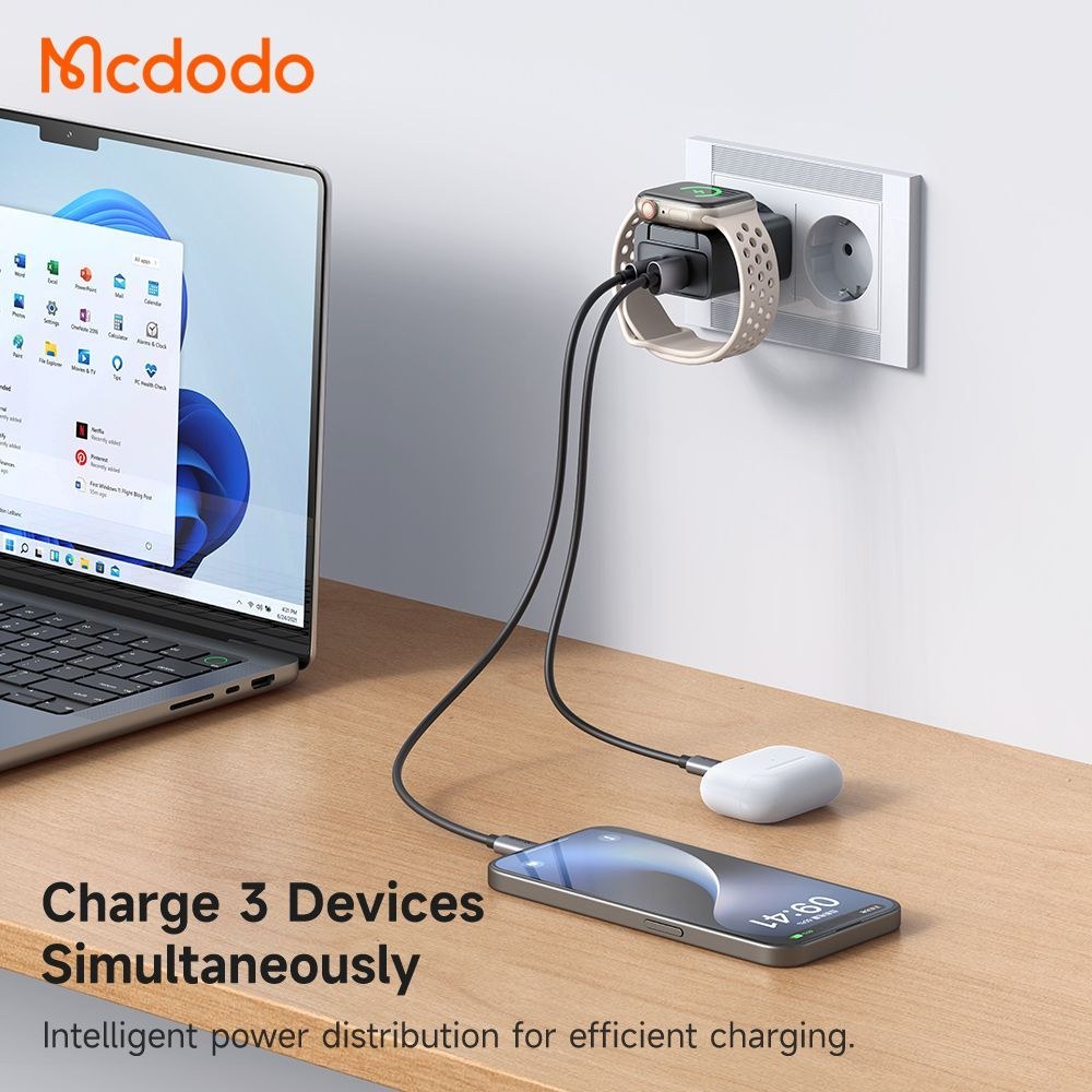 آداپتور دو پورت 30 وات همراه با شارژ اپل واچ مک دودو Mcdodo 2in1 Charger CH-3700