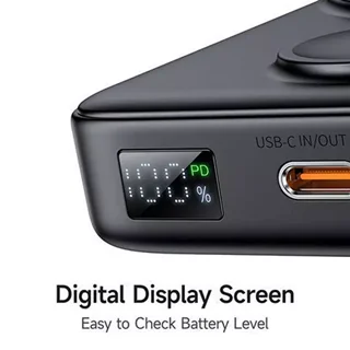 صفحه نمایش دیجیتال این پاوربانک به شما اطلاعات دقیقی درباره میزان شارژ باقیمانده و وضعیت شارژ دستگاهها ارائه میدهد. این نمایشگر به شما کمک میکند تا همیشه از وضعیت شارژ خود و دستگاههای متصل آگاه باشید.