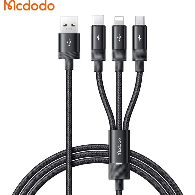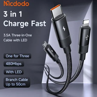 کابل سه سر 1.2 متری مک دودو (Mcdodo 3in1 Multiple Nylon Braided Cable CA-5790) یک کابل چند منظوره است که برای کاربران چندین دستگاه مختلف بسیار مناسب میباشد. این کابل با داشتن سه سر متفاوت (USB-C، میکرو USB، و لایتنینگ) امکان شارژ انواع دستگاههای هوشمند را فراهم میکند.