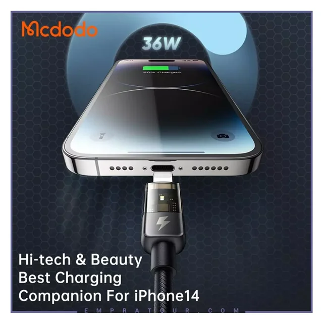 باتری دستگاهها میشود.با این ویژگیهای برجسته، کابل قطع کن دار تایپ سی به لایتنینگ 1.8 متری از برند Mcdodo