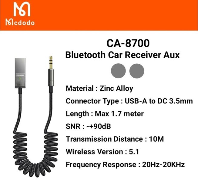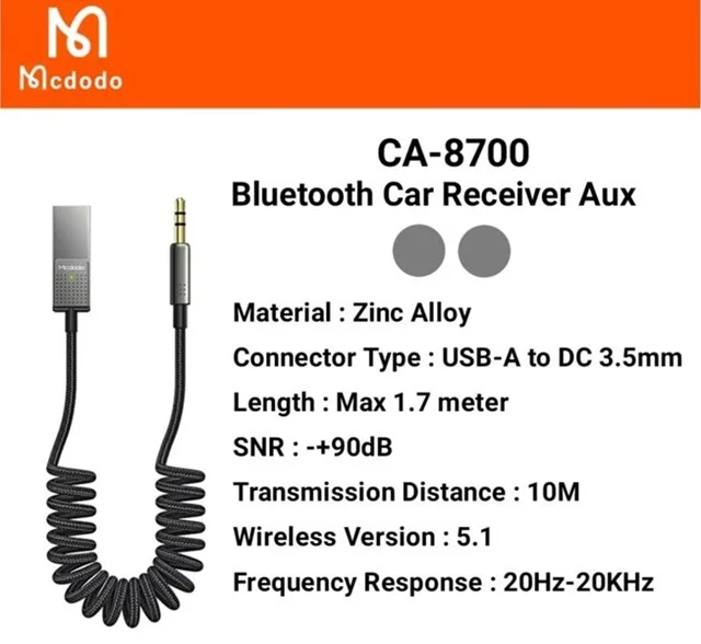 مشخصات گیرنده mcdodo bluetooth car reseiver aux ca-8700