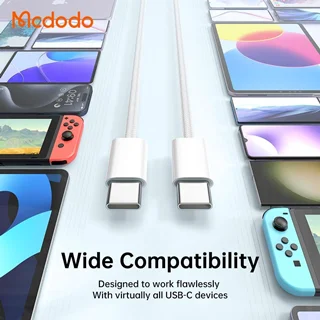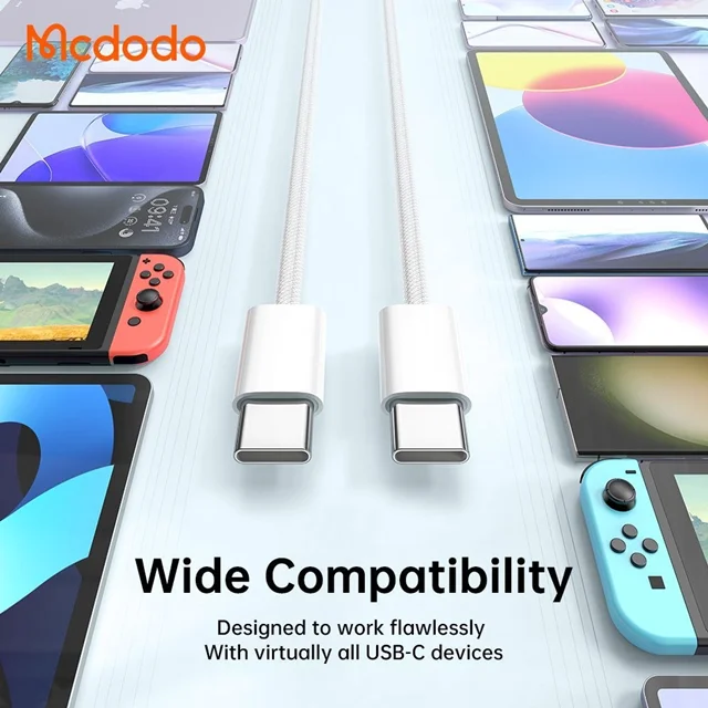 این کابل با تمامی دستگاههایی که از درگاه تایپ سی بهره میبرند سازگار است. از گوشیهای پرچمدار اندرویدی گرفته تا لپتاپهای جدید، پاوربانکها، کنسولها و تبلتها، همگی میتوانند با این کابل به راحتی شارژ شده یا اطلاعاتشان منتقل شود. همچنین طراحی کانکتورهای USB-C دوطرفه، استفاده از آن را بسیار راحتتر و سریعتر کرده است.