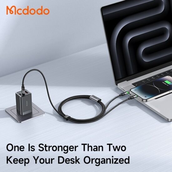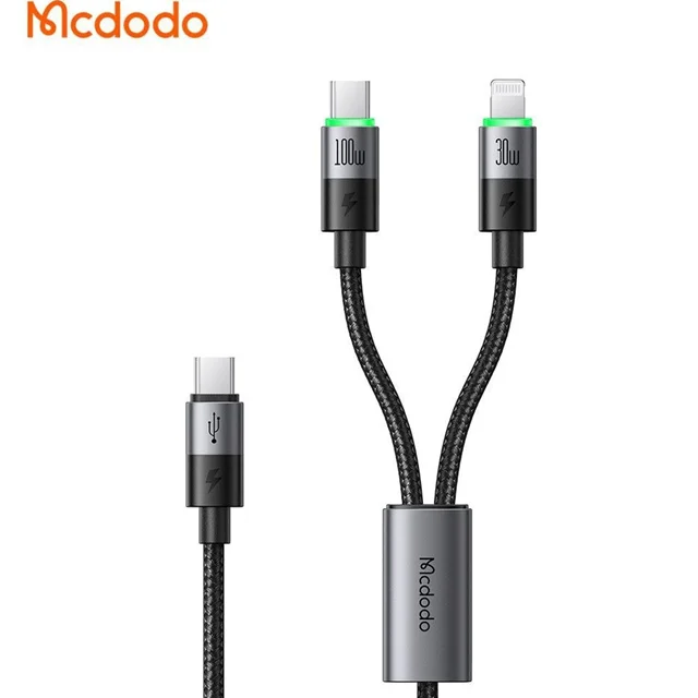 با افزایش روزانه لوازم هوشمند، نیاز به استفاده همزمان از چند کابل شارژ هم به امری اجتناب پذیر تبدیل شده است. توسط کمپانی mcdodo این مشکل برطرف شده است. کابل دو سر Type-C و لایتنینگ مک دودو Mcdodo CA-6700 توان 100 وات طول 1.5 متر که همزمان می توانید برای دو دستگاه از این کابل برای شارژ گوشی همراه خود استفاده کنید.