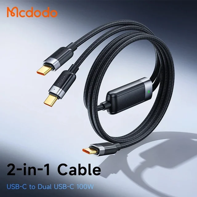 با افزایش روزانه لوازم هوشمند، نیاز به استفاده همزمان از چند کابل شارژ هم به امری اجتناب پذیر تبدیل شده است. توسط کمپانی mcdodo این مشکل برطرف شده است. کابل دو سر Type-C مک دودو Mcdodo CA-6780 توان 100 وات طول 1.5 متر که همزمان می توانید برای دو دستگاه از این کابل برای شارژ گوشی همراه خود استفاده کنید.