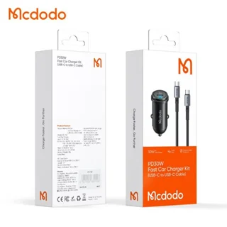 شارژر فندکی مکدودو 30 وات به همراه دو سر تایپ سی کابل MCDODO CC-7493 30W 1C PD Fast Car Charger+ USB-C to USB-C Cable 1.2m