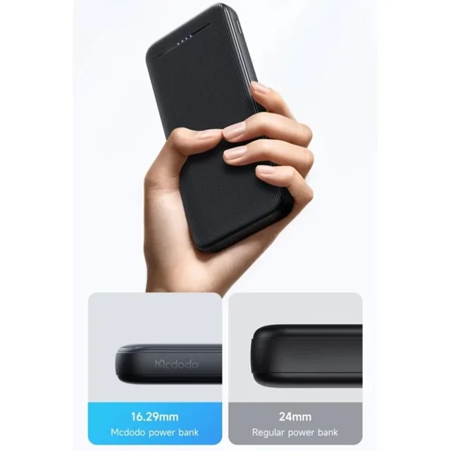 طراحی این پاوربانک نیز بسیار کم حجم و سبک است، که امکان حمل آسان آن را فراهم میکند. همچنین، دارای نمایشگر LED است که وضعیت شارژ باطری را به شما نشان میدهد، بنابراین میتوانید به راحتی وضعیت باطری پاوربانک را بررسی کرده و به موقع آن را شارژ کنید. پاوربانک دو پورت 10000 میلیآمپر ساخته Mcdodo یک گزینه عالی برای افرادی است که به دنبال یک پاوربانک کارآمد، قابل اعتماد و سبک هستند تا بتوانند دستگاههای خود را به راحتی در هر زمان و مکانی شارژ نمایند.