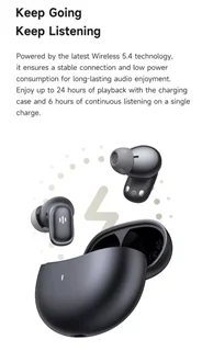 یکی دیگر از مزیتهای این محصول، عمر باتری بالا است. این هدفون در هر بار شارژ کامل، تا 6 ساعت استفاده مداوم را فراهم میکند و با وجود کیس شارژ، زمان استفاده به حدود 24 ساعت افزایش مییابد. چنین ویژگیای برای کاربرانی که در طول روز استفاده مداوم از هدفون دارند، بسیار ارزشمند است. باید توجه داشت که این میزان از شارژدهی با در نظر گرفتن شرایط آزمایشگاهی مورد سنجش قرار گرفته و میزان حجم صدا چیزی برابر با 50 درصد است، بنابراین ممکن است که در شرایطی که شما از هندزفری استفاده میکنید، این اعداد کمی متفاوت باشد.علاوه بر این، زمان شارژ هدفون تنها 1.6 ساعت و کیس شارژ حدود 2 ساعت است که نشاندهنده سرعت شارژ مناسب دستگاه است.