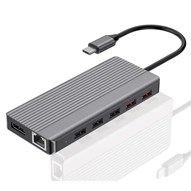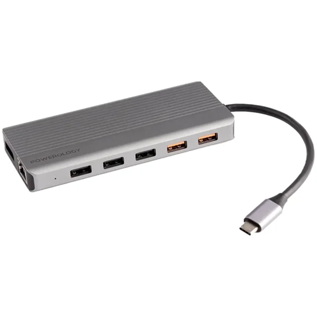 هاب تایپ سی 12 پورت آلومینیومی پاورولوژی 12in1 USB-C Hub HDMI Type-C 100W PD Ethernet VGA USB SD MicroSD 3.5AUX P121HBCGY