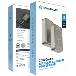 پاوربانک مگ سیف 15 وات و تایپ سی 20 وات 20000 پاورولوژی Powerology مدل Magsafe Aluminum Powerbank PPBCHA33-TI