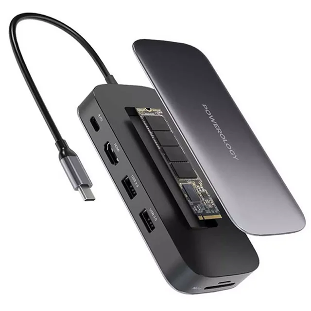 یکی از ویژگیهای برجسته Powerology USB-C Hub و درایو SSD 256 گیگابایتی، پشتیبانی از رابطهای ذخیرهسازی SATA و M.2 است که به شما این امکان را میدهد تا فضای ذخیرهسازی خود را بهراحتی ارتقاء دهید. با این ویژگی، شما میتوانید از هارددیسکهای SATA یا درایوهای SSD M.2 برای افزودن فضای اضافی استفاده کنید.