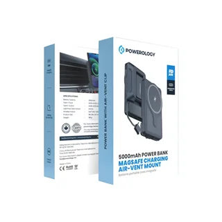 Powerology 5000mAh Power Bank With Magnetic Wireless Charger Car Mount PPBCHA32