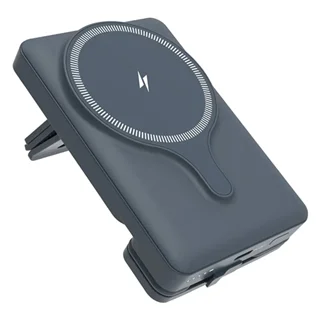 پاوربانک وایرلس 15 وات و تایپ سی 20 وات 5000 با قابلیت اتصال به دریچه کولر ماشین پاورولوژی Powerology مدل Power Bank With Magnetic Wireless Charger Car Mount PPBCHA32
