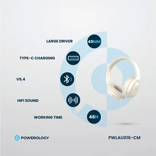 Powerology Hybrid ANC از بلوتوث نسخه 5.4 بهره میبرد که نسبت به نسخههای قبلی اتصال سریعتر، پایدارتر و کممصرفتری دارد. برد 10 متری به شما امکان میدهد بدون نگرانی از قطع ارتباط، آزادانه در محیط حرکت کنید.