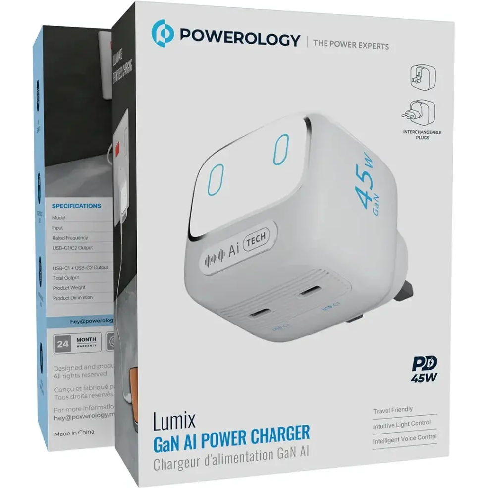 Powerology Lumix GaN AI Power Charger PWCUQC052WH