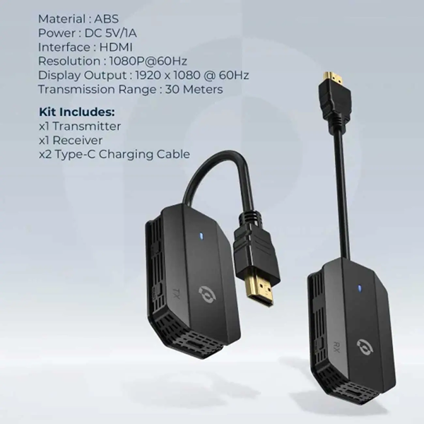 مبدل Powerology Wireless HDMI to HDMI یک ابزار الکترونیکی است که به منظور تبدیل سیگنالهای ویدئویی و صوتی دیجیتال از دستگاههایی با خروجیهای مختلف به رابط HDMI استفاده میشود. HDMI به عنوان یک استاندارد پیشرو در انتقال دادههای صوتی و تصویری با کیفیت بالا، امروزه به طور گسترده در دستگاههایی مانند تلویزیونهای هوشمند، مانیتورها، کنسولهای بازی، لپتاپها و پروژکتورها مورد استفاده قرار میگیرد. اما برخی از دستگاههای قدیمی یا برخی تجهیزات خاص ممکن است از این پورت پشتیبانی نکنند و در چنین مواردی، مبدل HDMI به کمک میآید. این کیت شامل یک فرستنده، یک گیرنده و 2 کابل شارژ Type-C است.