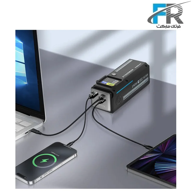 این پاور بانک مجهز به باتری با ظرفیت ۲۷۰۰۰ میلیآمپر ساعت است که معادل ۹۹.۹ واتساعت انرژی را فراهم میکند. ظرفیت بالا امکان شارژ چندین بار گوشیهای هوشمند ، تبلتها و حتی لپتاپها را بدون نیاز به اتصال مداوم به برق فراهم میکند. این ویژگی برای سفرهای طولانی ، کارهای بیرون از خانه و شرایط اضطراری بسیار ارزشمند است و خیال کاربر را از بابت تمام شدن سریع شارژ راحت میکند.