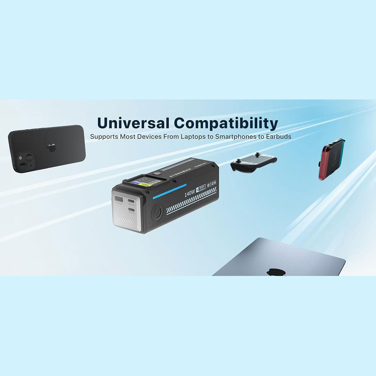Powerology PPBCHA83 از پورت USB-C PD با توان خروجی تا ۱۴۰ وات پشتیبانی میکند که امکان شارژ سریع لپتاپها و دستگاههای سنگین را فراهم میکند. این ویژگی باعث میشود دستگاههای حرفهای مانند لپتاپهای گیمینگ ، مکبوک و تبلتهای بزرگ به سرعت شارژ شوند و نیاز به برق شهری یا آداپتورهای اضافی کاهش یابد. توان بالا و تکنولوژی PD ، شارژ بهینه و ایمن برای دستگاههای حساس را تضمین میکند.